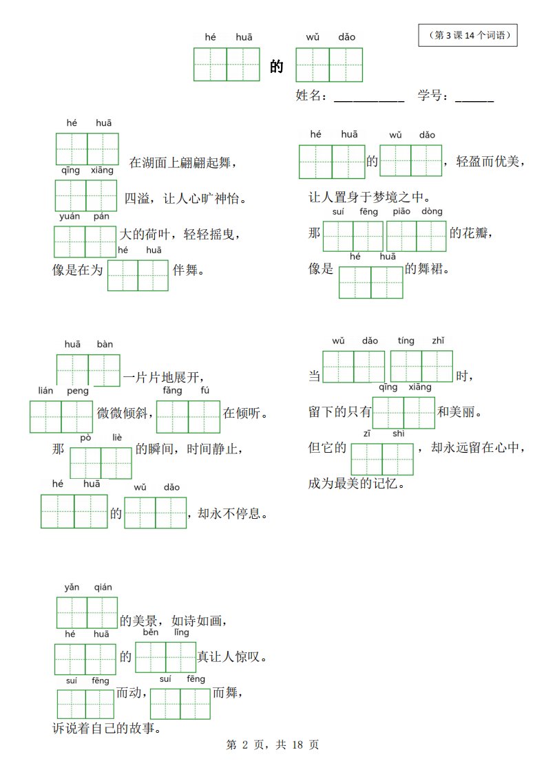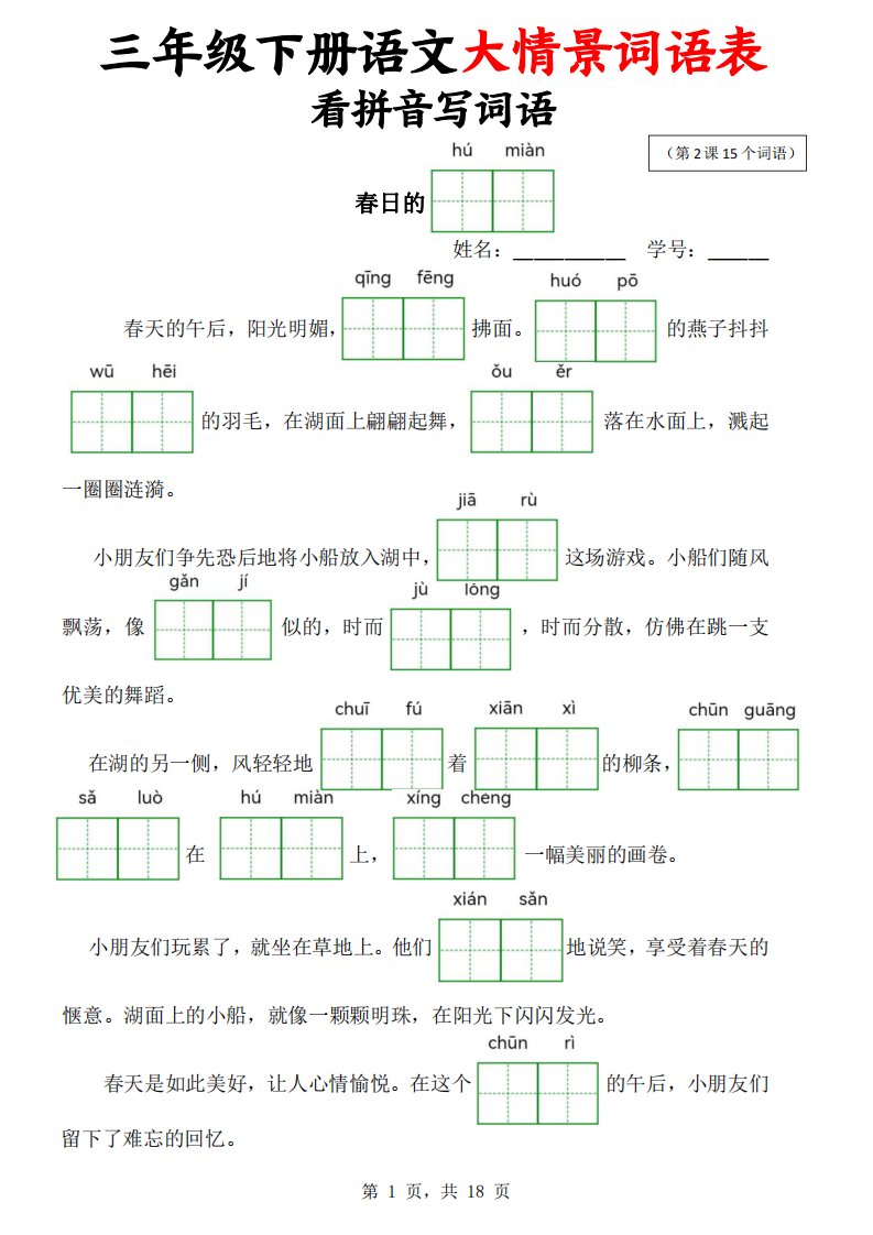 当前位置: 首页小学资源小学三年级正文 三下语文大情境词语表看拼音写词语(18页)_共18页 小学三年级 1 周前 0 0 10 以上为部分内容预览,如需源文档请登录您的会员账号进行下载! 声明:本站所有文章,如无特殊说明或标注,均为本站原创发布。任何个人或组织,在未征得本站同意时,禁止复制、盗用、采集、发布本站内容到任何网站、书籍等各类媒体平台。如若本站内容侵犯了原著者的合法权益,可联系我们进行处理。 尚学资源永久会员 打赏 收藏 海报 链接