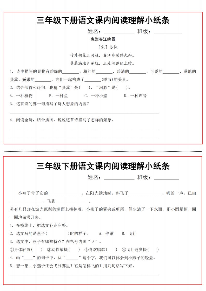当前位置: 首页小学资源小学三年级正文 三年级下册语文课内阅读理解小纸条13页_共13页 小学三年级 1 周前 0 0 10 以上为部分内容预览,如需源文档请登录您的会员账号进行下载! 声明:本站所有文章,如无特殊说明或标注,均为本站原创发布。任何个人或组织,在未征得本站同意时,禁止复制、盗用、采集、发布本站内容到任何网站、书籍等各类媒体平台。如若本站内容侵犯了原著者的合法权益,可联系我们进行处理。 尚学资源永久会员 打赏 收藏 海报 链接