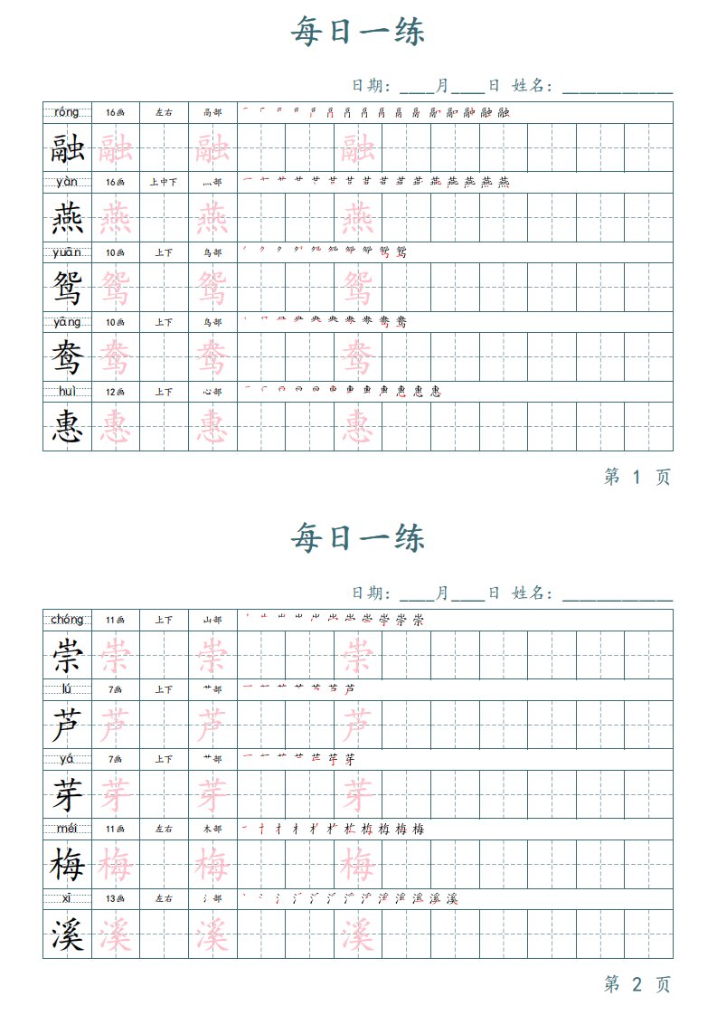 当前位置: 首页小学资源小学三年级正文 三年级下册语文生字表每日一练字帖(楷体)_共25页 小学三年级 1 周前 0 0 15 以上为部分内容预览,如需源文档请登录您的会员账号进行下载! 声明:本站所有文章,如无特殊说明或标注,均为本站原创发布。任何个人或组织,在未征得本站同意时,禁止复制、盗用、采集、发布本站内容到任何网站、书籍等各类媒体平台。如若本站内容侵犯了原著者的合法权益,可联系我们进行处理。 尚学资源永久会员 打赏 收藏 海报 链接