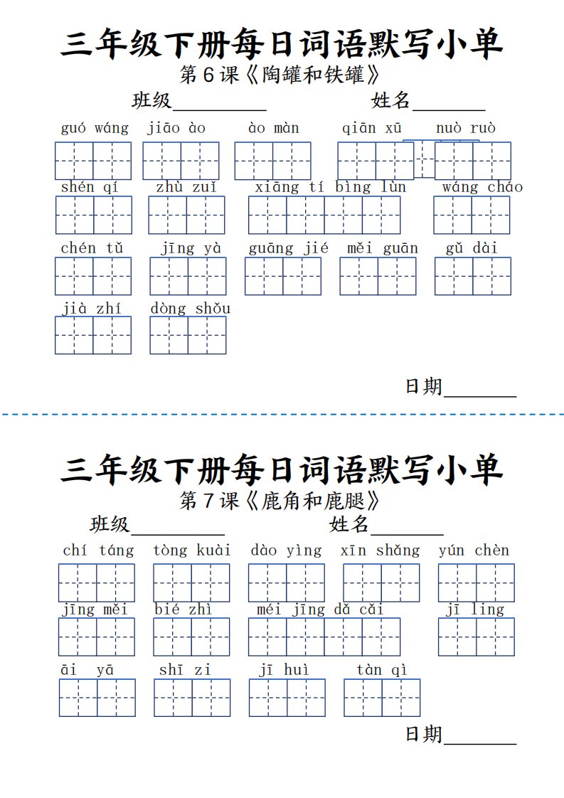 当前位置: 首页小学资源小学三年级正文 【默写】三下语文《词语表》每日默写小单9页_共9页 小学三年级 1 周前 0 0 5 以上为部分内容预览,如需源文档请登录您的会员账号进行下载! 声明:本站所有文章,如无特殊说明或标注,均为本站原创发布。任何个人或组织,在未征得本站同意时,禁止复制、盗用、采集、发布本站内容到任何网站、书籍等各类媒体平台。如若本站内容侵犯了原著者的合法权益,可联系我们进行处理。 尚学资源永久会员 打赏 收藏 海报 链接