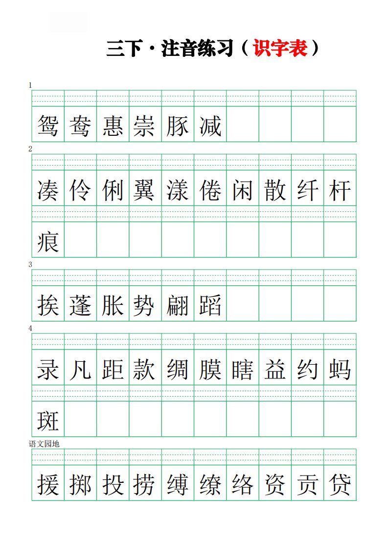 当前位置: 首页小学资源小学三年级正文 【注音练习(识字表)】三下语文_共6页 小学三年级 1 周前 0 0 5 以上为部分内容预览,如需源文档请登录您的会员账号进行下载! 声明:本站所有文章,如无特殊说明或标注,均为本站原创发布。任何个人或组织,在未征得本站同意时,禁止复制、盗用、采集、发布本站内容到任何网站、书籍等各类媒体平台。如若本站内容侵犯了原著者的合法权益,可联系我们进行处理。 尚学资源永久会员 打赏 收藏 海报 链接