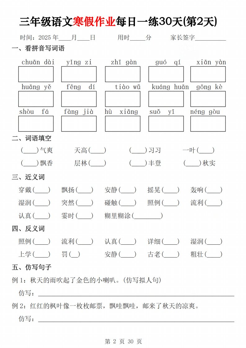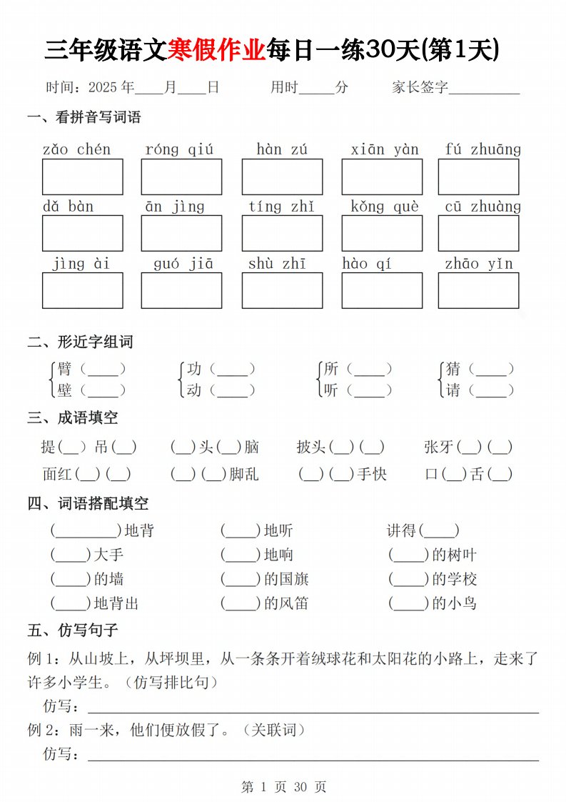 当前位置: 首页小学资源小学三年级正文 三年级下语文寒假作业每日一练30天(含答案60页)_共60页 小学三年级 1 周前 0 0 15 以上为部分内容预览,如需源文档请登录您的会员账号进行下载! 声明:本站所有文章,如无特殊说明或标注,均为本站原创发布。任何个人或组织,在未征得本站同意时,禁止复制、盗用、采集、发布本站内容到任何网站、书籍等各类媒体平台。如若本站内容侵犯了原著者的合法权益,可联系我们进行处理。 尚学资源永久会员 打赏 收藏 海报 链接