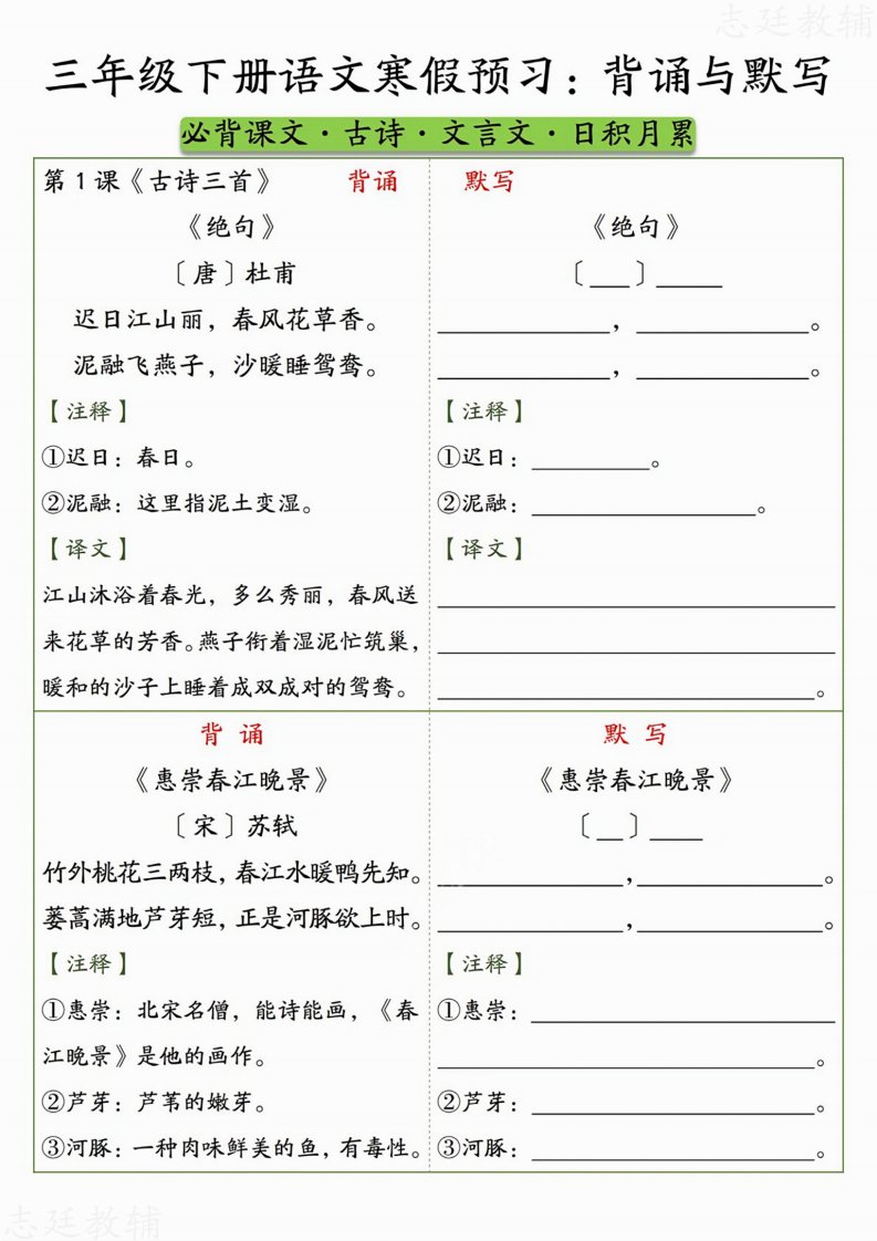 当前位置: 首页小学资源小学三年级正文 三下语文寒假预习:背诵与默写_共14页 小学三年级 7 天前 0 0 10 以上为部分内容预览,如需源文档请登录您的会员账号进行下载! 声明:本站所有文章,如无特殊说明或标注,均为本站原创发布。任何个人或组织,在未征得本站同意时,禁止复制、盗用、采集、发布本站内容到任何网站、书籍等各类媒体平台。如若本站内容侵犯了原著者的合法权益,可联系我们进行处理。 尚学资源永久会员 打赏 收藏 海报 链接