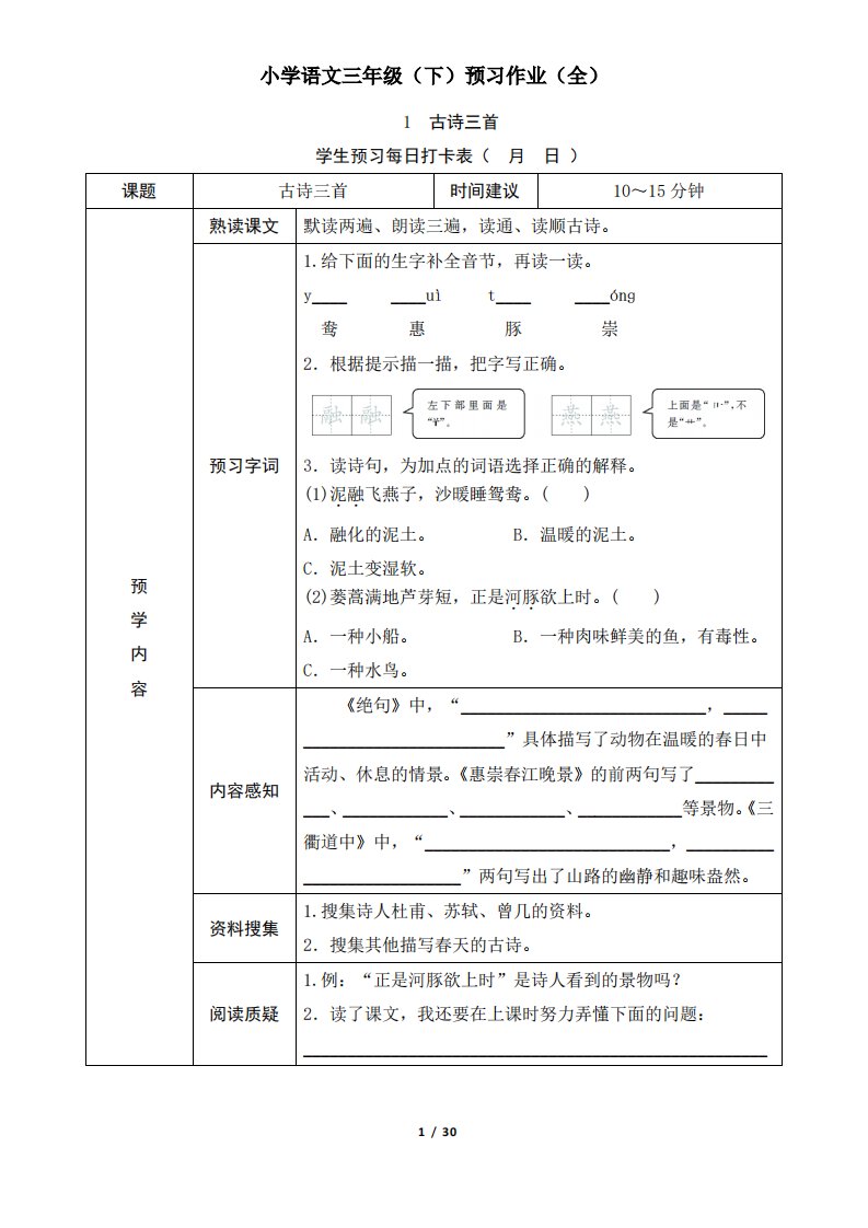 当前位置: 首页小学资源小学三年级正文 三下语文预习单(无答案)_共30页 小学三年级 7 天前 0 0 15 以上为部分内容预览,如需源文档请登录您的会员账号进行下载! 声明:本站所有文章,如无特殊说明或标注,均为本站原创发布。任何个人或组织,在未征得本站同意时,禁止复制、盗用、采集、发布本站内容到任何网站、书籍等各类媒体平台。如若本站内容侵犯了原著者的合法权益,可联系我们进行处理。 尚学资源永久会员 打赏 收藏 海报 链接