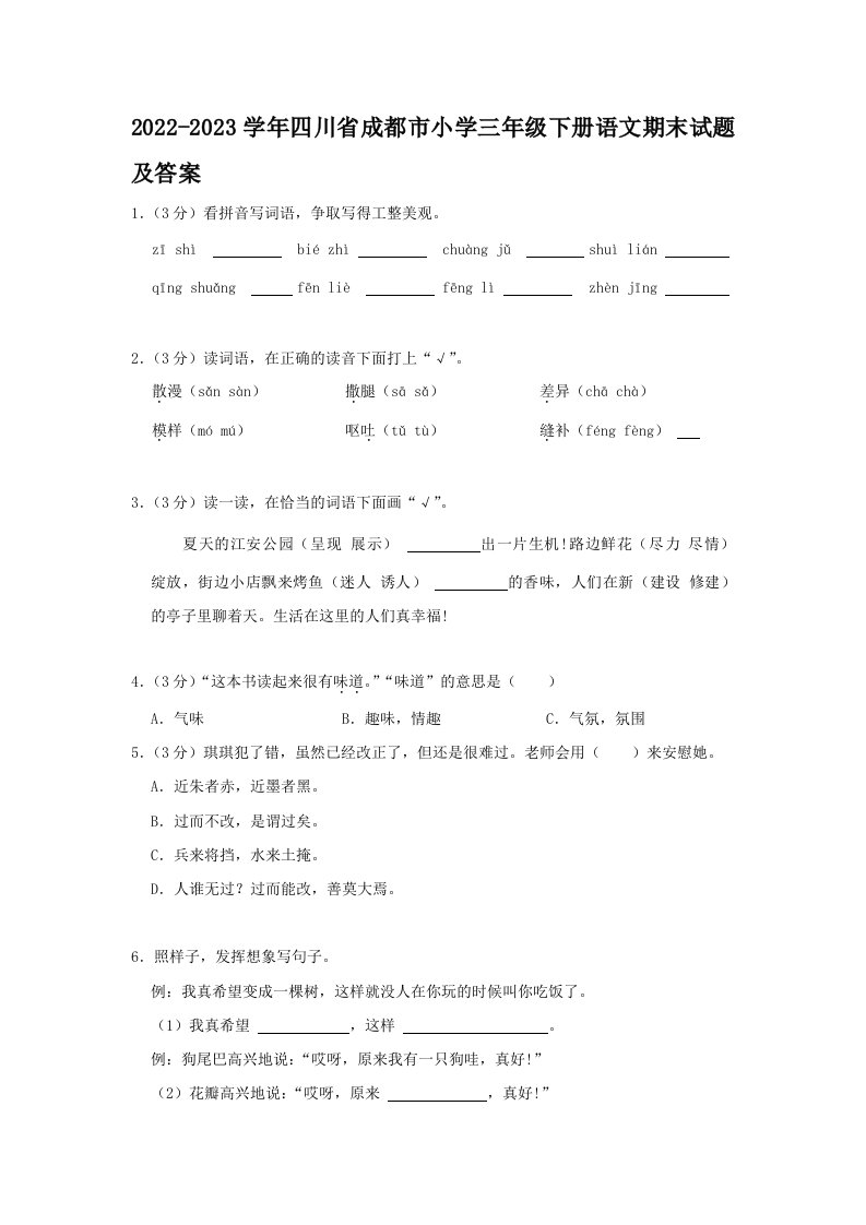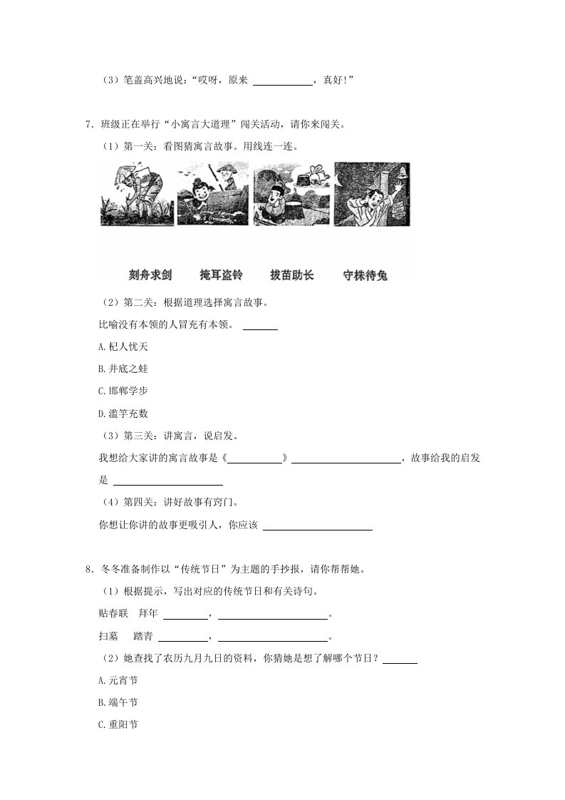 当前位置: 首页小学资源小学三年级正文 2022-2023学年四川省成都市小学三年级下册语文期末试题及答案(Word版)_共17页 小学三年级 1 周前 0 0 10 以上为部分内容预览,如需源文档请登录您的会员账号进行下载! 声明:本站所有文章,如无特殊说明或标注,均为本站原创发布。任何个人或组织,在未征得本站同意时,禁止复制、盗用、采集、发布本站内容到任何网站、书籍等各类媒体平台。如若本站内容侵犯了原著者的合法权益,可联系我们进行处理。 尚学资源永久会员 打赏 收藏 海报 链接