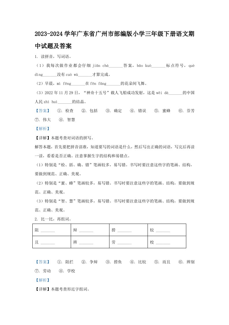 当前位置: 首页小学资源小学三年级正文 2023-2024学年广东省广州市部编版小学三年级下册语文期中试题及答案(Word版)_共12页 小学三年级 1 周前 0 0 10 以上为部分内容预览,如需源文档请登录您的会员账号进行下载! 声明:本站所有文章,如无特殊说明或标注,均为本站原创发布。任何个人或组织,在未征得本站同意时,禁止复制、盗用、采集、发布本站内容到任何网站、书籍等各类媒体平台。如若本站内容侵犯了原著者的合法权益,可联系我们进行处理。 尚学资源永久会员 打赏 收藏 海报 链接