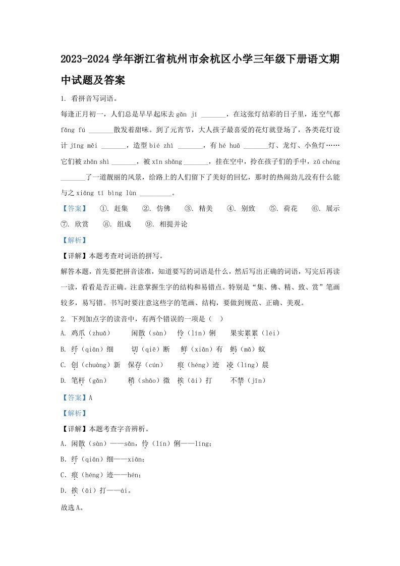 当前位置: 首页小学资源小学三年级正文 2023-2024学年浙江省杭州市余杭区小学三年级下册语文期中试题及答案(Word版)_共14页 小学三年级 1 周前 0 0 10 以上为部分内容预览,如需源文档请登录您的会员账号进行下载! 声明:本站所有文章,如无特殊说明或标注,均为本站原创发布。任何个人或组织,在未征得本站同意时,禁止复制、盗用、采集、发布本站内容到任何网站、书籍等各类媒体平台。如若本站内容侵犯了原著者的合法权益,可联系我们进行处理。 尚学资源永久会员 打赏 收藏 海报 链接