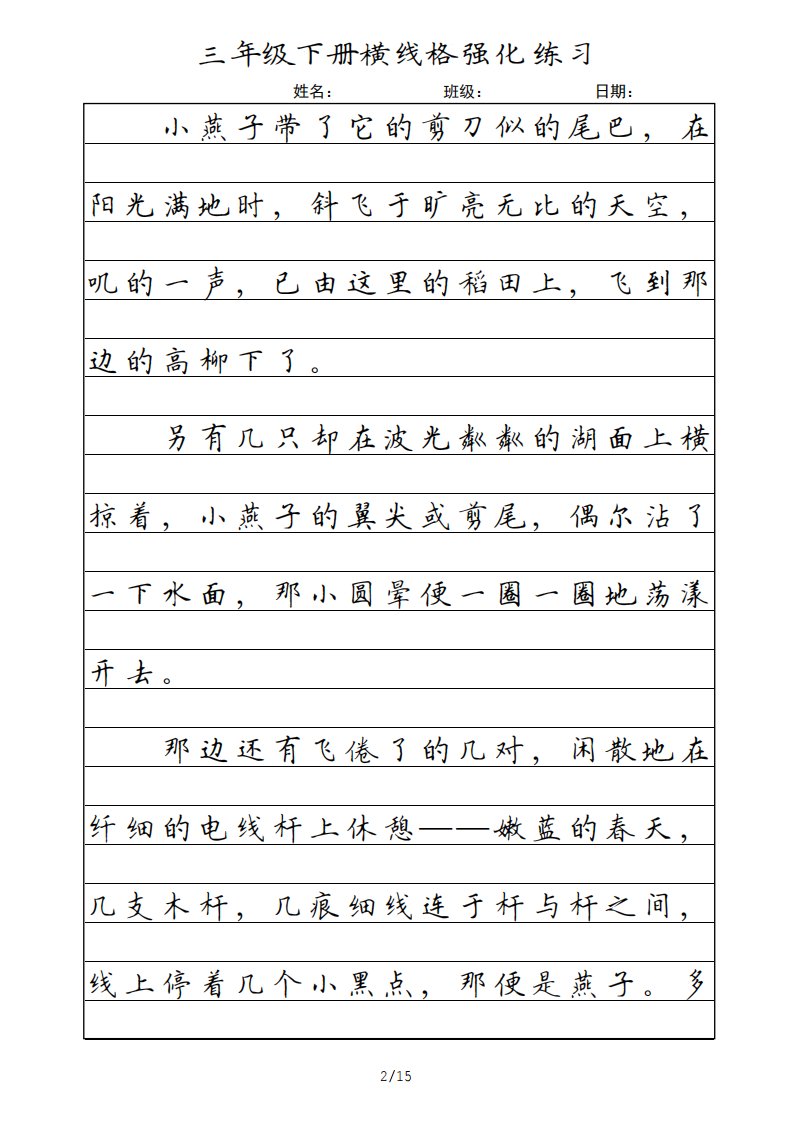 当前位置: 首页小学资源小学三年级正文 三年级语文下册横线格(部编版)_共15页 小学三年级 1 周前 0 0 10 以上为部分内容预览,如需源文档请登录您的会员账号进行下载! 声明:本站所有文章,如无特殊说明或标注,均为本站原创发布。任何个人或组织,在未征得本站同意时,禁止复制、盗用、采集、发布本站内容到任何网站、书籍等各类媒体平台。如若本站内容侵犯了原著者的合法权益,可联系我们进行处理。 尚学资源永久会员 打赏 收藏 海报 链接