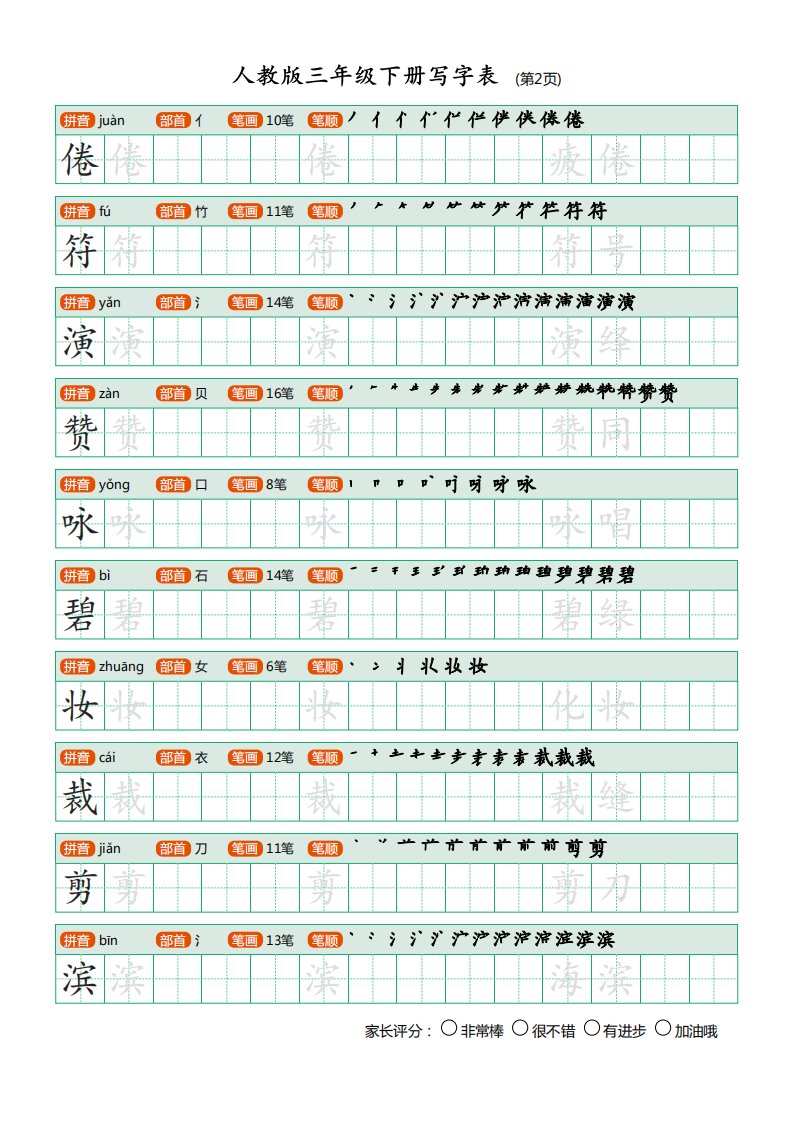 当前位置: 首页小学资源小学三年级正文 三年级语文下册写字表(30页)PDF(部编版)_共30页 小学三年级 1 周前 0 0 15 以上为部分内容预览,如需源文档请登录您的会员账号进行下载! 声明:本站所有文章,如无特殊说明或标注,均为本站原创发布。任何个人或组织,在未征得本站同意时,禁止复制、盗用、采集、发布本站内容到任何网站、书籍等各类媒体平台。如若本站内容侵犯了原著者的合法权益,可联系我们进行处理。 尚学资源永久会员 打赏 收藏 海报 链接