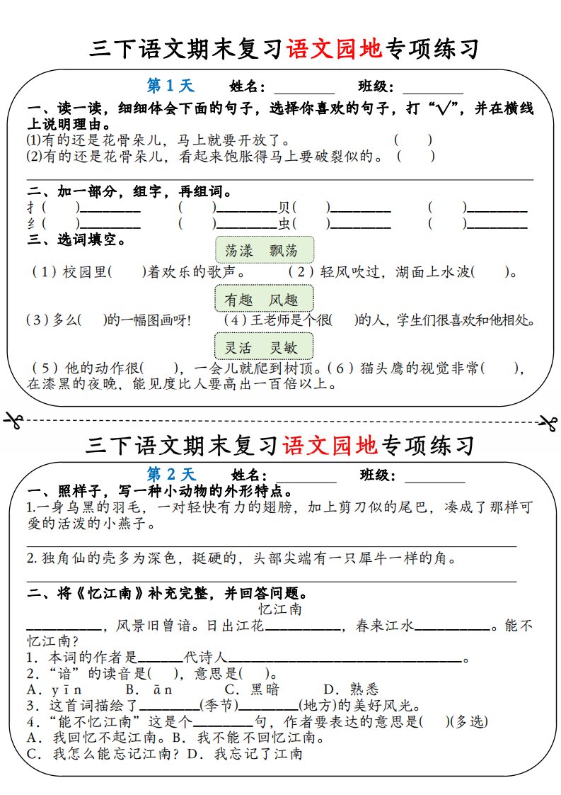 当前位置: 首页小学资源小学三年级正文 三下语文期末复习语文园地专项练习(含答案12页)_共12页 小学三年级 1 周前 0 0 10 以上为部分内容预览,如需源文档请登录您的会员账号进行下载! 声明:本站所有文章,如无特殊说明或标注,均为本站原创发布。任何个人或组织,在未征得本站同意时,禁止复制、盗用、采集、发布本站内容到任何网站、书籍等各类媒体平台。如若本站内容侵犯了原著者的合法权益,可联系我们进行处理。 尚学资源永久会员 打赏 收藏 海报 链接