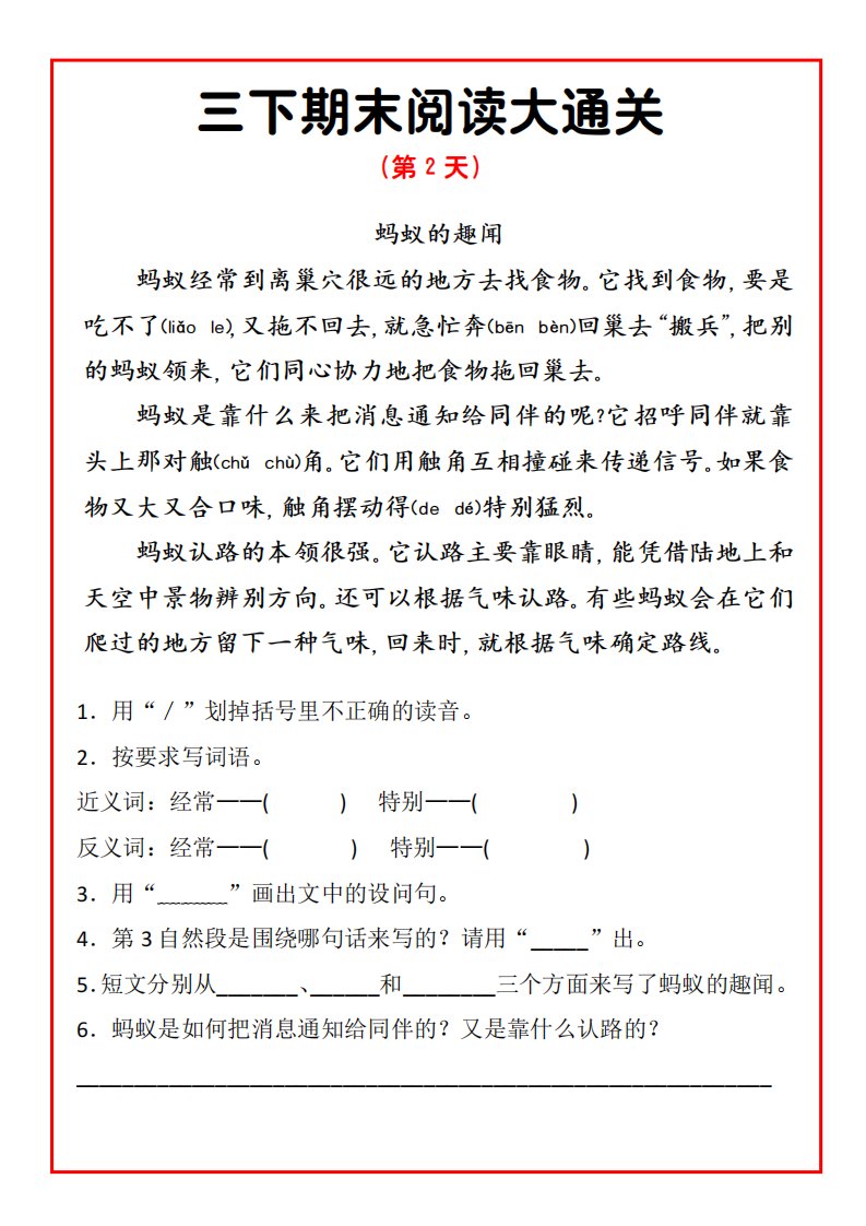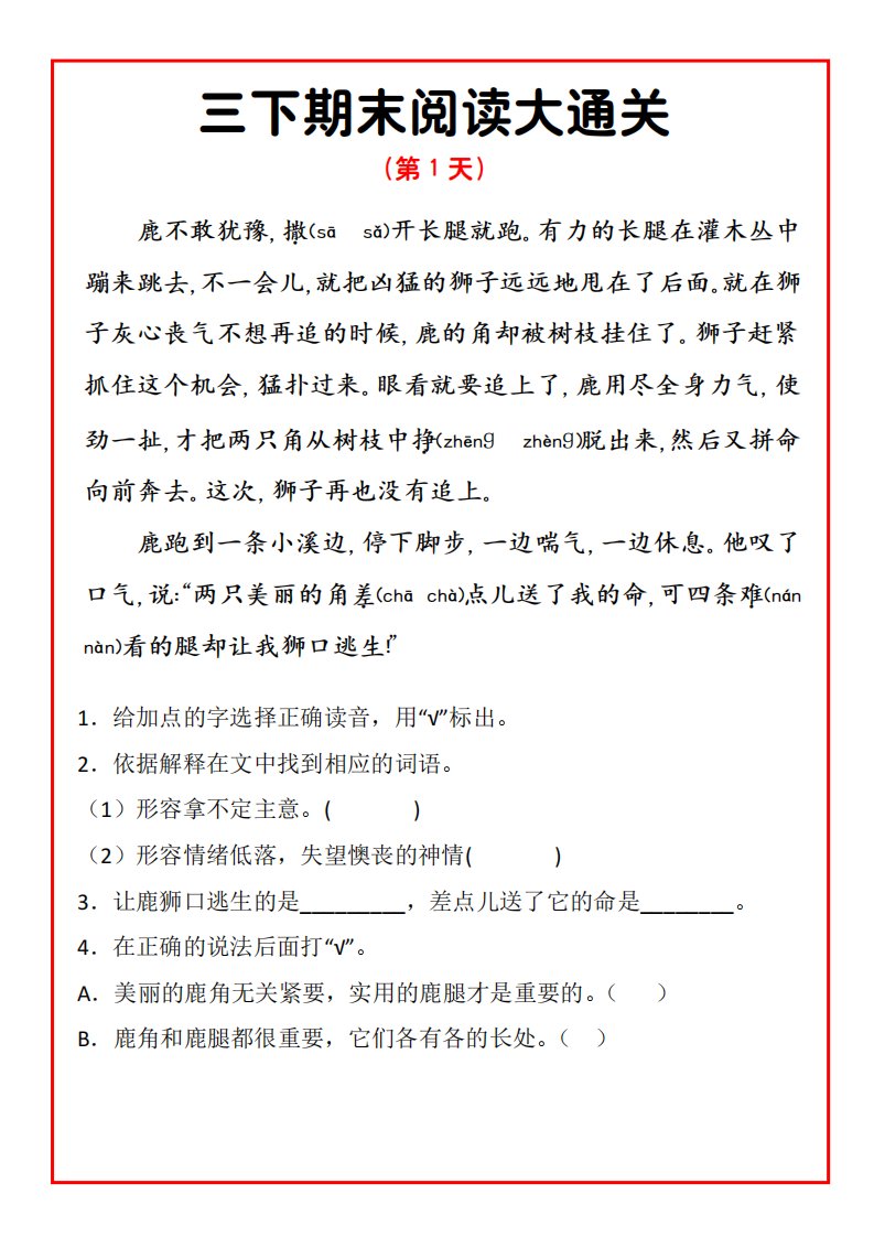 当前位置: 首页小学资源小学三年级正文 三下期末阅读通关15天_共15页 小学三年级 1 周前 0 0 10 以上为部分内容预览,如需源文档请登录您的会员账号进行下载! 声明:本站所有文章,如无特殊说明或标注,均为本站原创发布。任何个人或组织,在未征得本站同意时,禁止复制、盗用、采集、发布本站内容到任何网站、书籍等各类媒体平台。如若本站内容侵犯了原著者的合法权益,可联系我们进行处理。 尚学资源永久会员 打赏 收藏 海报 链接