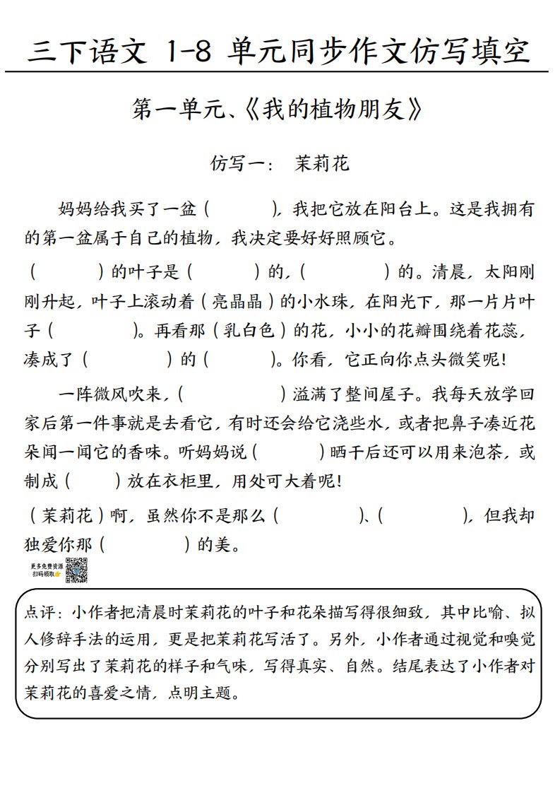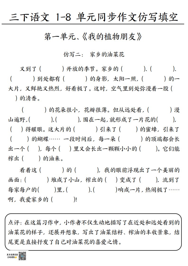 当前位置: 首页小学资源小学三年级正文 3.15三下语文作文仿写填空1-4单元_共10页 小学三年级 1 周前 0 0 5 以上为部分内容预览,如需源文档请登录您的会员账号进行下载! 声明:本站所有文章,如无特殊说明或标注,均为本站原创发布。任何个人或组织,在未征得本站同意时,禁止复制、盗用、采集、发布本站内容到任何网站、书籍等各类媒体平台。如若本站内容侵犯了原著者的合法权益,可联系我们进行处理。 尚学资源永久会员 打赏 收藏 海报 链接