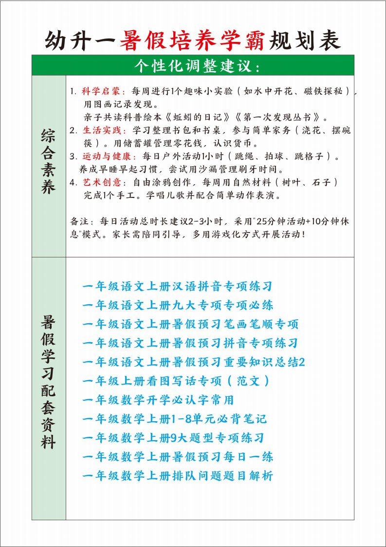 当前位置: 首页小学资源小学一年级正文 幼升一暑假培养学霸规划表-一上语文_共3页 小学一年级 2 周前 0 0 5 以上为部分内容预览,如需源文档请登录您的会员账号进行下载! 声明:本站所有文章,如无特殊说明或标注,均为本站原创发布。任何个人或组织,在未征得本站同意时,禁止复制、盗用、采集、发布本站内容到任何网站、书籍等各类媒体平台。如若本站内容侵犯了原著者的合法权益,可联系我们进行处理。 尚学资源永久会员 打赏 收藏 海报 链接