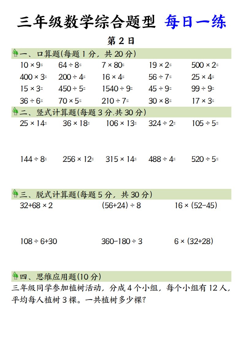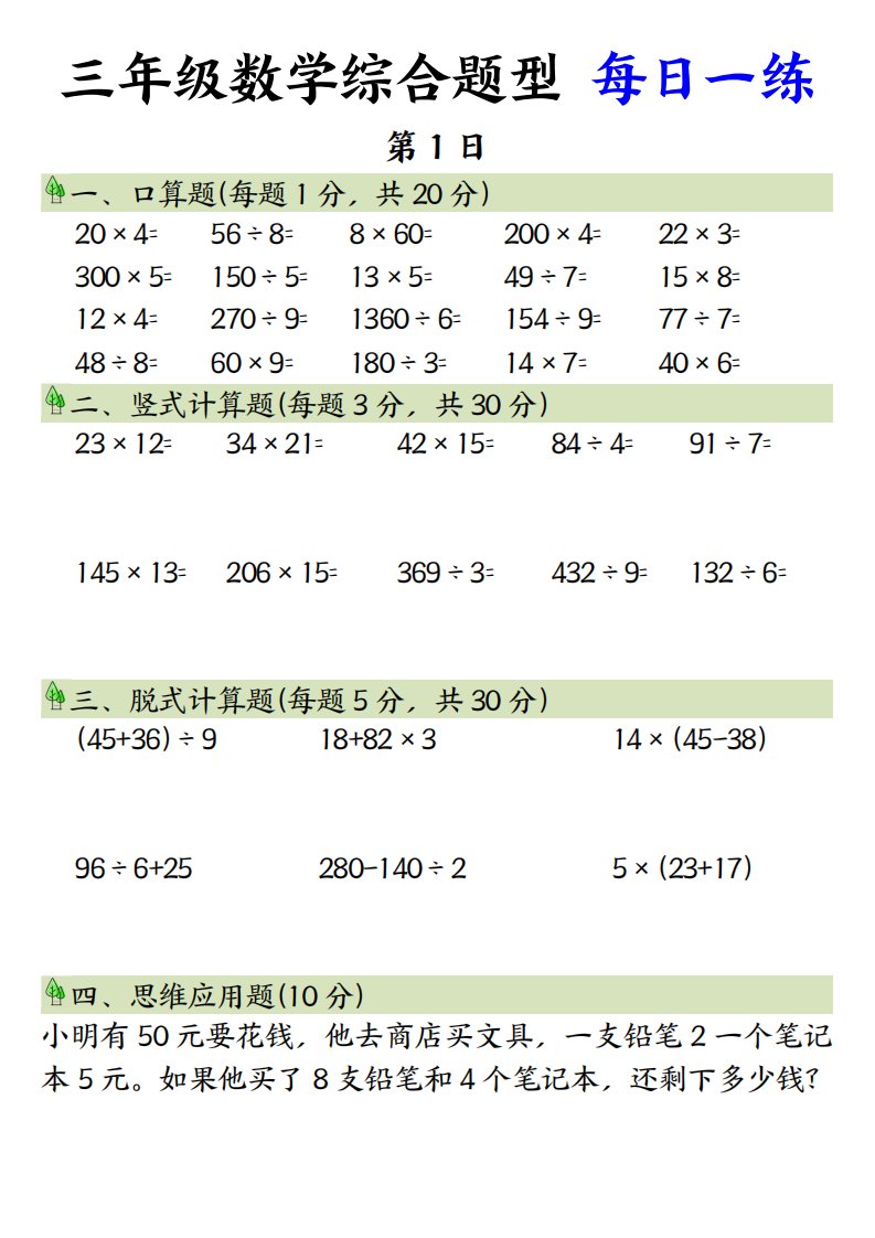 当前位置: 首页小学资源小学三年级正文 三年级数学综合题型+每日一练三下数学_共8页 小学三年级 1 周前 0 0 5 以上为部分内容预览,如需源文档请登录您的会员账号进行下载! 声明:本站所有文章,如无特殊说明或标注,均为本站原创发布。任何个人或组织,在未征得本站同意时,禁止复制、盗用、采集、发布本站内容到任何网站、书籍等各类媒体平台。如若本站内容侵犯了原著者的合法权益,可联系我们进行处理。 尚学资源永久会员 打赏 收藏 海报 链接