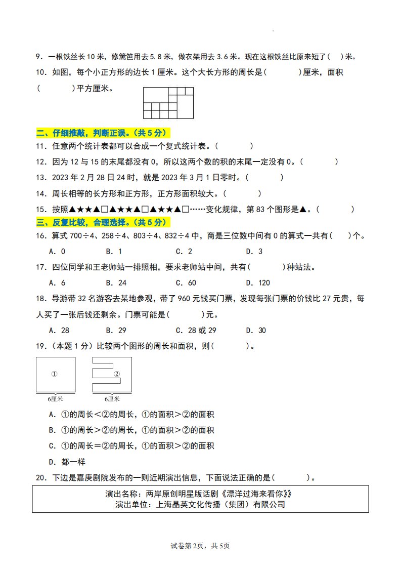 当前位置: 首页小学资源小学三年级正文 三年级数学下册期末押题卷【基础卷02】_共5页 小学三年级 1 周前 0 0 5 以上为部分内容预览,如需源文档请登录您的会员账号进行下载! 声明:本站所有文章,如无特殊说明或标注,均为本站原创发布。任何个人或组织,在未征得本站同意时,禁止复制、盗用、采集、发布本站内容到任何网站、书籍等各类媒体平台。如若本站内容侵犯了原著者的合法权益,可联系我们进行处理。 尚学资源永久会员 打赏 收藏 海报 链接