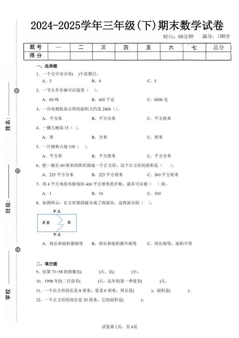 当前位置: 首页小学资源小学三年级正文 24-25三下数学(苏教版)期末试卷4_共15页 小学三年级 1 周前 0 0 10 以上为部分内容预览,如需源文档请登录您的会员账号进行下载! 声明:本站所有文章,如无特殊说明或标注,均为本站原创发布。任何个人或组织,在未征得本站同意时,禁止复制、盗用、采集、发布本站内容到任何网站、书籍等各类媒体平台。如若本站内容侵犯了原著者的合法权益,可联系我们进行处理。 尚学资源永久会员 打赏 收藏 海报 链接