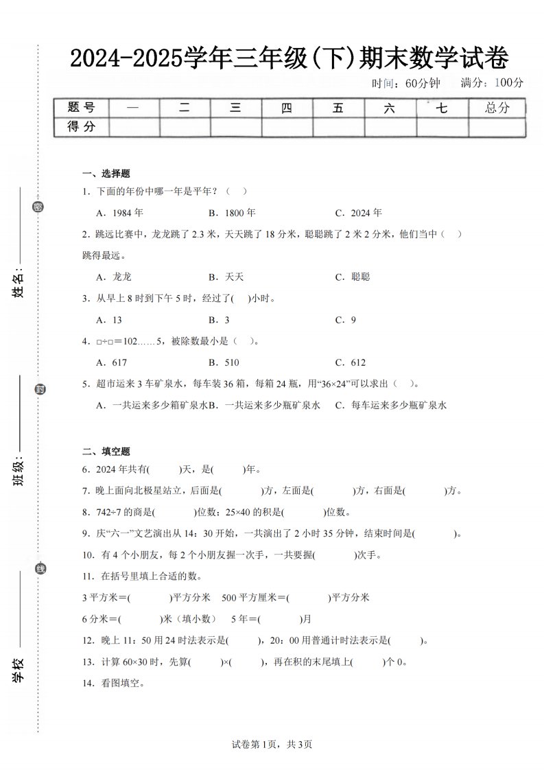 当前位置: 首页小学资源小学三年级正文 24-25三下数学(人教版)期末试卷3_共12页 小学三年级 1 周前 0 0 10 以上为部分内容预览,如需源文档请登录您的会员账号进行下载! 声明:本站所有文章,如无特殊说明或标注,均为本站原创发布。任何个人或组织,在未征得本站同意时,禁止复制、盗用、采集、发布本站内容到任何网站、书籍等各类媒体平台。如若本站内容侵犯了原著者的合法权益,可联系我们进行处理。 尚学资源永久会员 打赏 收藏 海报 链接