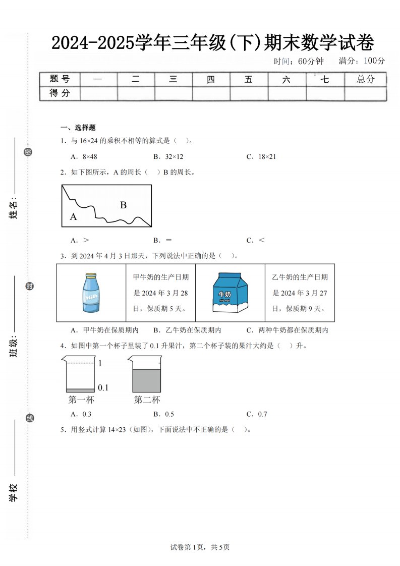 当前位置: 首页小学资源小学三年级正文 24-25三下数学(人教版)期末试卷1_共15页 小学三年级 1 周前 0 0 10 以上为部分内容预览,如需源文档请登录您的会员账号进行下载! 声明:本站所有文章,如无特殊说明或标注,均为本站原创发布。任何个人或组织,在未征得本站同意时,禁止复制、盗用、采集、发布本站内容到任何网站、书籍等各类媒体平台。如若本站内容侵犯了原著者的合法权益,可联系我们进行处理。 尚学资源永久会员 打赏 收藏 海报 链接