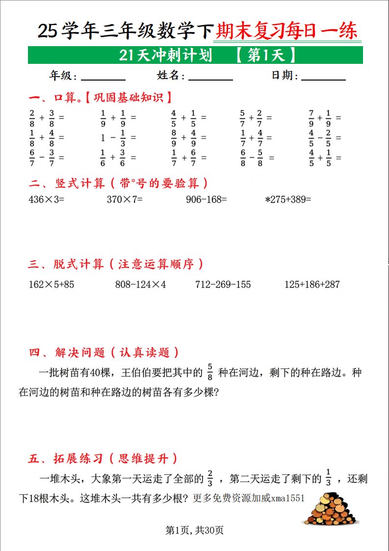 当前位置: 首页小学资源小学三年级正文 三下数学【期末复习21天冲刺计划每日一练】_共21页 小学三年级 1 周前 0 0 15 以上为部分内容预览,如需源文档请登录您的会员账号进行下载! 声明:本站所有文章,如无特殊说明或标注,均为本站原创发布。任何个人或组织,在未征得本站同意时,禁止复制、盗用、采集、发布本站内容到任何网站、书籍等各类媒体平台。如若本站内容侵犯了原著者的合法权益,可联系我们进行处理。 尚学资源永久会员 打赏 收藏 海报 链接