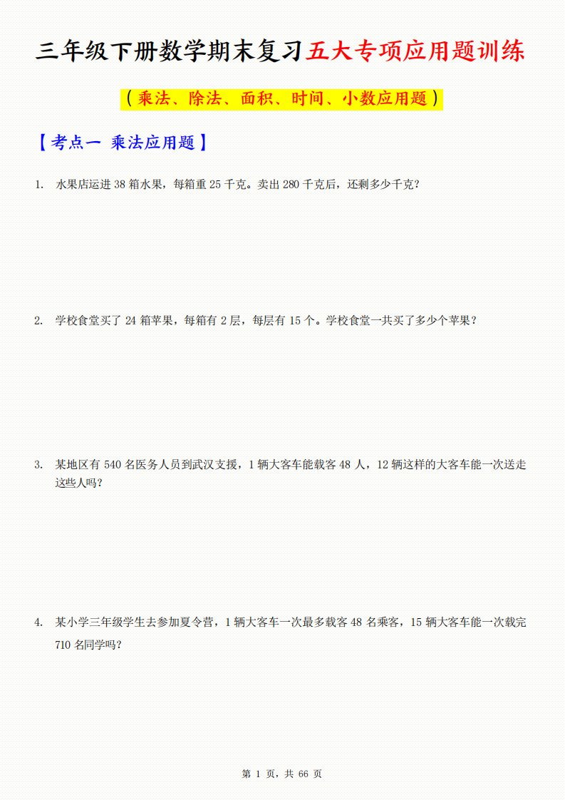 当前位置: 首页小学资源小学三年级正文 三下数学期末复习五大专项应用题训练(含答案解析66页)_共66页 小学三年级 1 周前 0 0 15 以上为部分内容预览,如需源文档请登录您的会员账号进行下载! 声明:本站所有文章,如无特殊说明或标注,均为本站原创发布。任何个人或组织,在未征得本站同意时,禁止复制、盗用、采集、发布本站内容到任何网站、书籍等各类媒体平台。如若本站内容侵犯了原著者的合法权益,可联系我们进行处理。 尚学资源永久会员 打赏 收藏 海报 链接