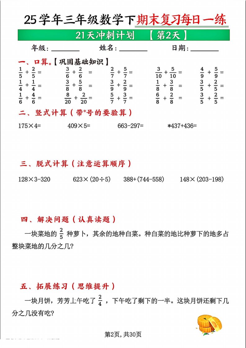 三下数学期末复习每日一练21天冲刺计划(21页)_共21页