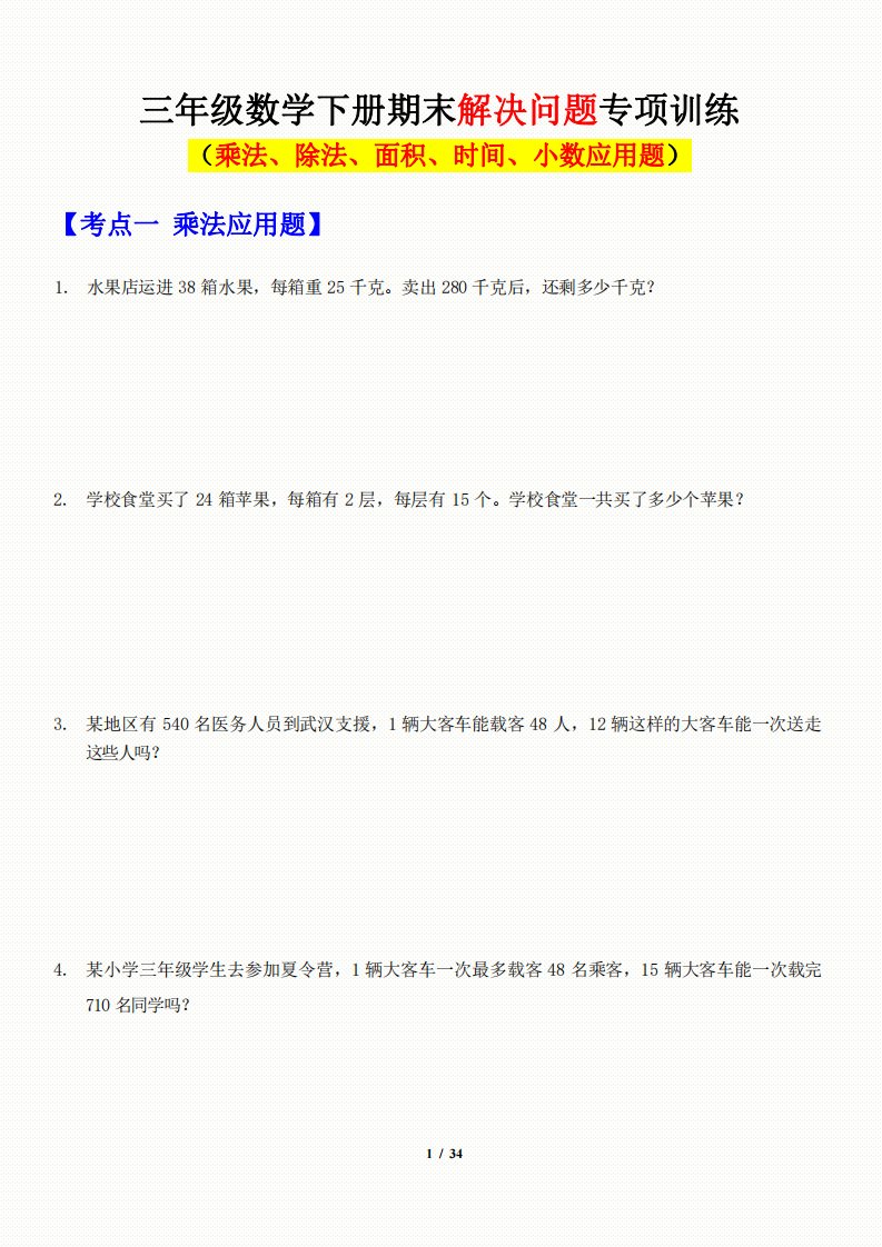 当前位置: 首页小学资源小学三年级正文 三年级下数学应用题-期末解决问题专项训练_共101页 小学三年级 1 周前 0 0 15 以上为部分内容预览,如需源文档请登录您的会员账号进行下载! 声明:本站所有文章,如无特殊说明或标注,均为本站原创发布。任何个人或组织,在未征得本站同意时,禁止复制、盗用、采集、发布本站内容到任何网站、书籍等各类媒体平台。如若本站内容侵犯了原著者的合法权益,可联系我们进行处理。 尚学资源永久会员 打赏 收藏 海报 链接