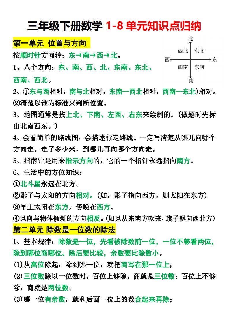 三年级下册数学1-8单元知识点归纳(改)_共7页
