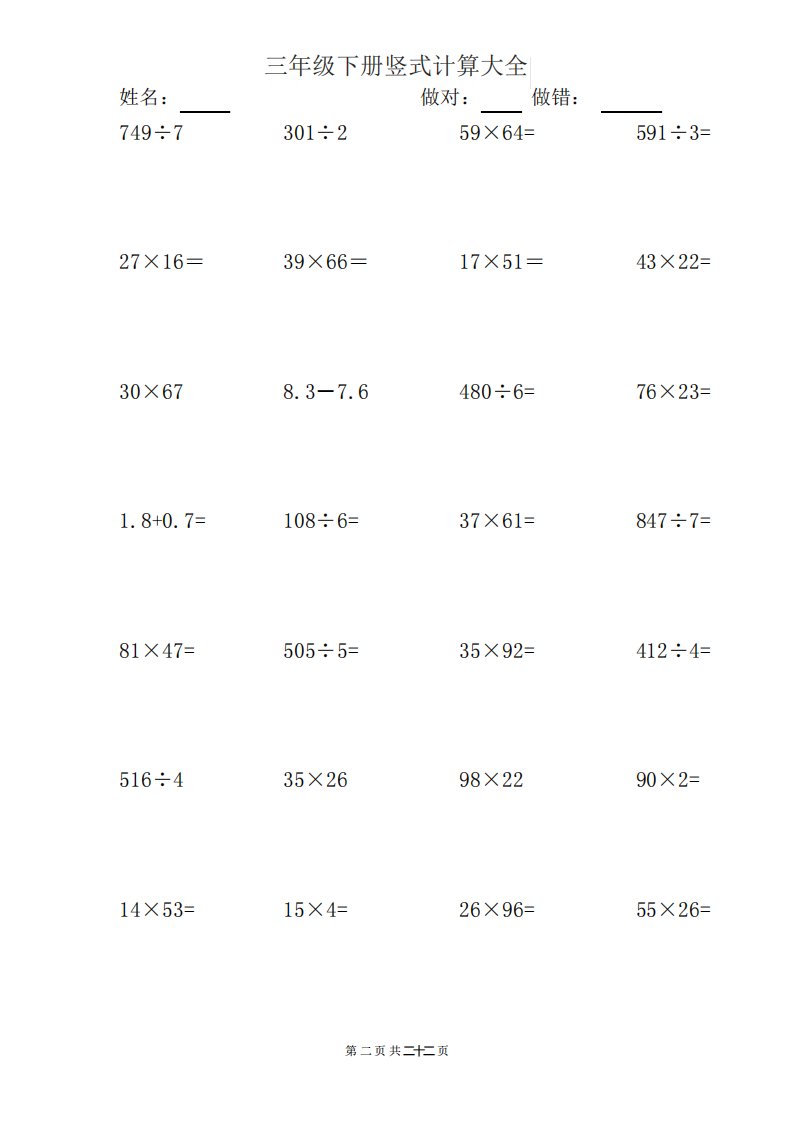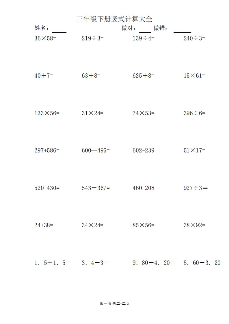 当前位置: 首页小学资源小学三年级正文 三下数学【竖式计算大全】_共22页 小学三年级 1 周前 0 0 15 以上为部分内容预览,如需源文档请登录您的会员账号进行下载! 声明:本站所有文章,如无特殊说明或标注,均为本站原创发布。任何个人或组织,在未征得本站同意时,禁止复制、盗用、采集、发布本站内容到任何网站、书籍等各类媒体平台。如若本站内容侵犯了原著者的合法权益,可联系我们进行处理。 尚学资源永久会员 打赏 收藏 海报 链接