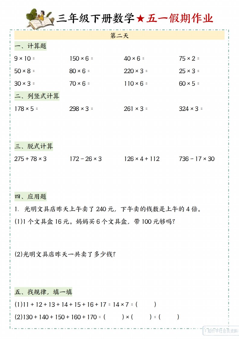 当前位置: 首页小学资源小学三年级正文 三下数学五一假期作业_共5页 小学三年级 1 周前 0 0 5 以上为部分内容预览,如需源文档请登录您的会员账号进行下载! 声明:本站所有文章,如无特殊说明或标注,均为本站原创发布。任何个人或组织,在未征得本站同意时,禁止复制、盗用、采集、发布本站内容到任何网站、书籍等各类媒体平台。如若本站内容侵犯了原著者的合法权益,可联系我们进行处理。 尚学资源永久会员 打赏 收藏 海报 链接