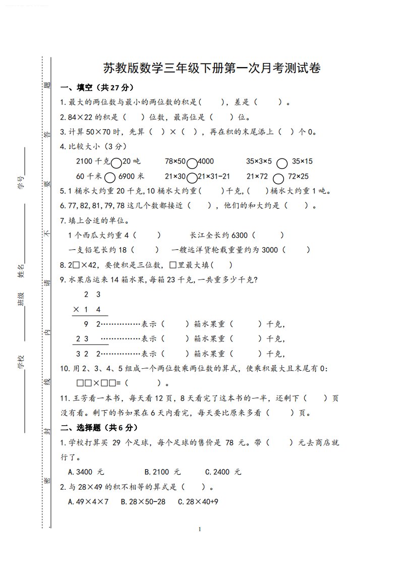 当前位置: 首页小学资源小学三年级正文 三下苏教版数学第一次月考试卷_共8页 小学三年级 1 周前 0 0 5 以上为部分内容预览,如需源文档请登录您的会员账号进行下载! 声明:本站所有文章,如无特殊说明或标注,均为本站原创发布。任何个人或组织,在未征得本站同意时,禁止复制、盗用、采集、发布本站内容到任何网站、书籍等各类媒体平台。如若本站内容侵犯了原著者的合法权益,可联系我们进行处理。 尚学资源永久会员 打赏 收藏 海报 链接