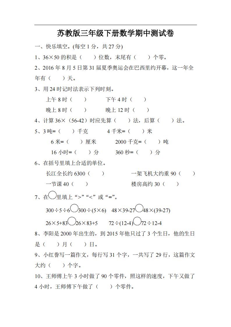 当前位置: 首页小学资源小学三年级正文 三下苏教版数学期中测试卷-4_共6页 小学三年级 1 周前 0 0 5 以上为部分内容预览,如需源文档请登录您的会员账号进行下载! 声明:本站所有文章,如无特殊说明或标注,均为本站原创发布。任何个人或组织,在未征得本站同意时,禁止复制、盗用、采集、发布本站内容到任何网站、书籍等各类媒体平台。如若本站内容侵犯了原著者的合法权益,可联系我们进行处理。 尚学资源永久会员 打赏 收藏 海报 链接