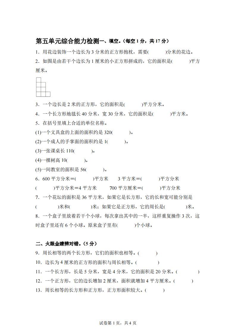 当前位置: 首页小学资源小学三年级正文 青岛63版数学三年级下册第五单元《长方形和正方形的面积》综合能力检测卷_共15页 小学三年级 1 周前 0 0 10 以上为部分内容预览,如需源文档请登录您的会员账号进行下载! 声明:本站所有文章,如无特殊说明或标注,均为本站原创发布。任何个人或组织,在未征得本站同意时,禁止复制、盗用、采集、发布本站内容到任何网站、书籍等各类媒体平台。如若本站内容侵犯了原著者的合法权益,可联系我们进行处理。 尚学资源永久会员 打赏 收藏 海报 链接