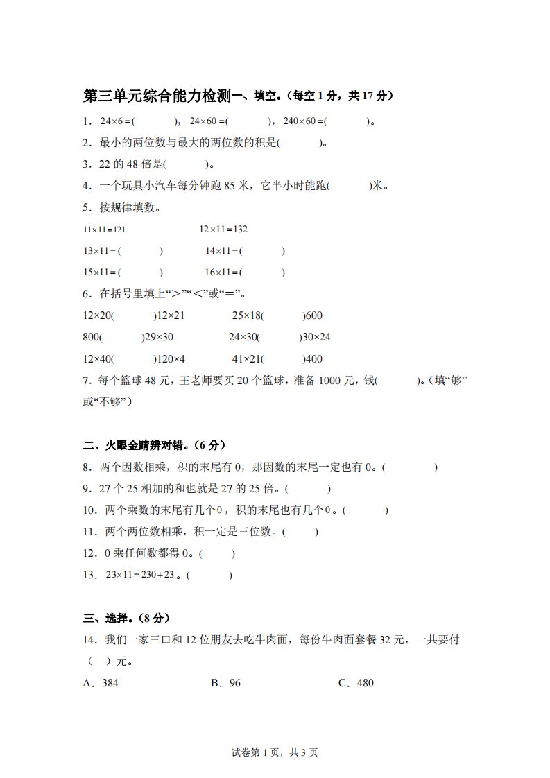 当前位置: 首页小学资源小学三年级正文 青岛63版数学三年级下册第三单元《两位数乘两位数》综合能力检测卷_共13页 小学三年级 1 周前 0 0 10 以上为部分内容预览,如需源文档请登录您的会员账号进行下载! 声明:本站所有文章,如无特殊说明或标注,均为本站原创发布。任何个人或组织,在未征得本站同意时,禁止复制、盗用、采集、发布本站内容到任何网站、书籍等各类媒体平台。如若本站内容侵犯了原著者的合法权益,可联系我们进行处理。 尚学资源永久会员 打赏 收藏 海报 链接