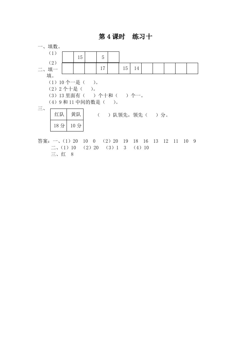 一年级数学上册第4课时练习十(苏教版)_共1页