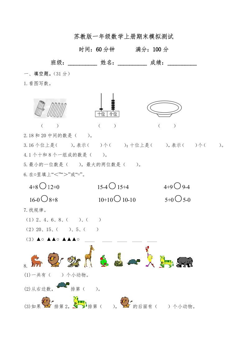 当前位置: 首页小学资源小学一年级正文 一年级数学上册期末测试卷4(苏教版)_共7页 小学一年级 2 周前 0 0 5 以上为部分内容预览,如需源文档请登录您的会员账号进行下载! 声明:本站所有文章,如无特殊说明或标注,均为本站原创发布。任何个人或组织,在未征得本站同意时,禁止复制、盗用、采集、发布本站内容到任何网站、书籍等各类媒体平台。如若本站内容侵犯了原著者的合法权益,可联系我们进行处理。 尚学资源永久会员 打赏 收藏 海报 链接