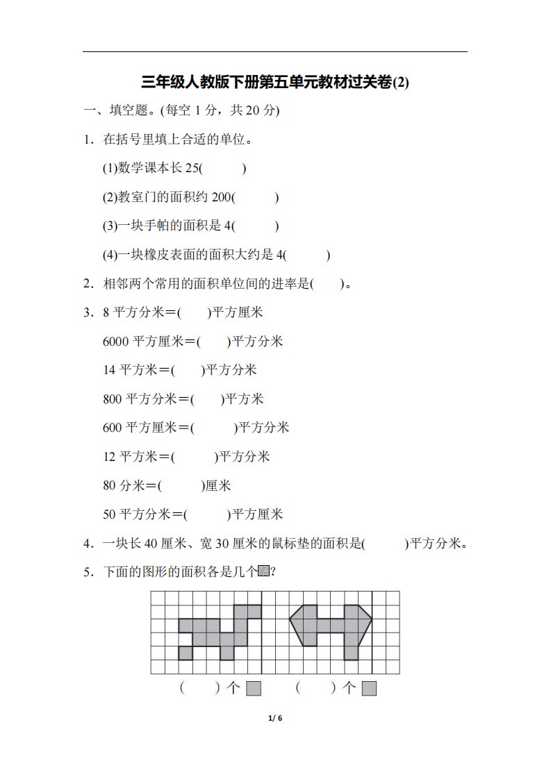 当前位置: 首页小学资源小学三年级正文 三下人教版数学第五单元教材过关卷-2_共6页 小学三年级 1 周前 0 0 5 以上为部分内容预览,如需源文档请登录您的会员账号进行下载! 声明:本站所有文章,如无特殊说明或标注,均为本站原创发布。任何个人或组织,在未征得本站同意时,禁止复制、盗用、采集、发布本站内容到任何网站、书籍等各类媒体平台。如若本站内容侵犯了原著者的合法权益,可联系我们进行处理。 尚学资源永久会员 打赏 收藏 海报 链接