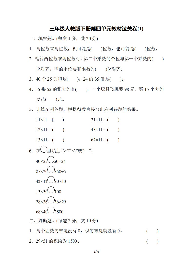 当前位置: 首页小学资源小学三年级正文 三下人教版数学第四单元教材过关卷-1_共6页 小学三年级 1 周前 0 0 5 以上为部分内容预览,如需源文档请登录您的会员账号进行下载! 声明:本站所有文章,如无特殊说明或标注,均为本站原创发布。任何个人或组织,在未征得本站同意时,禁止复制、盗用、采集、发布本站内容到任何网站、书籍等各类媒体平台。如若本站内容侵犯了原著者的合法权益,可联系我们进行处理。 尚学资源永久会员 打赏 收藏 海报 链接