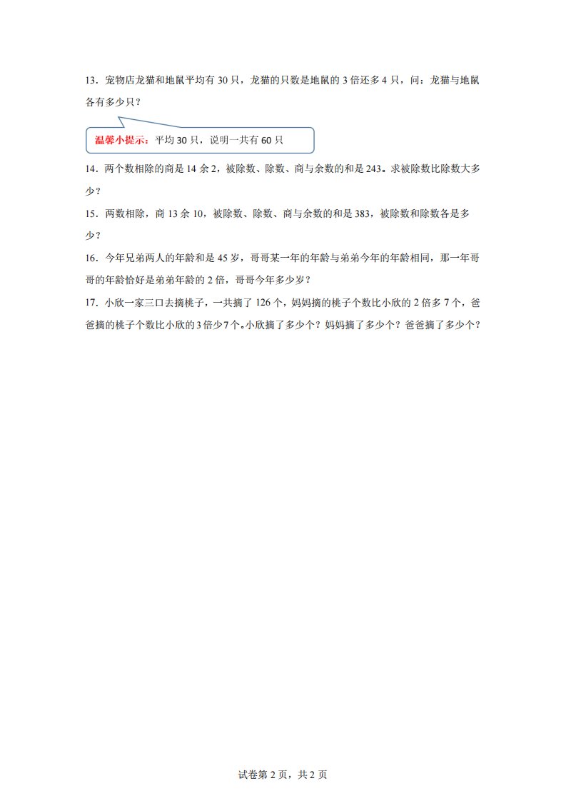 当前位置: 首页小学资源小学三年级正文 【和倍】通用版三年级下册数学典型应用题:和倍问题_共9页 小学三年级 1 周前 0 0 5 以上为部分内容预览,如需源文档请登录您的会员账号进行下载! 声明:本站所有文章,如无特殊说明或标注,均为本站原创发布。任何个人或组织,在未征得本站同意时,禁止复制、盗用、采集、发布本站内容到任何网站、书籍等各类媒体平台。如若本站内容侵犯了原著者的合法权益,可联系我们进行处理。 尚学资源永久会员 打赏 收藏 海报 链接