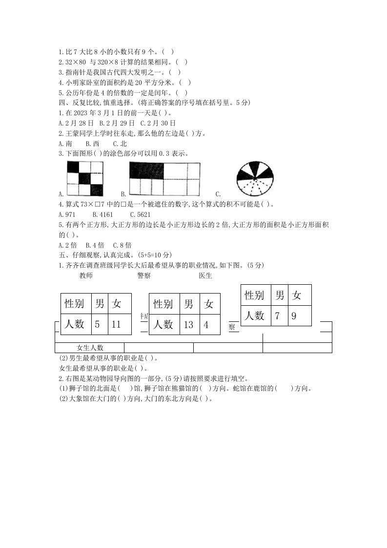 当前位置: 首页小学资源小学三年级正文 2022-2023学年重庆市开州区小学三年级下册数学期末试题及答案(Word版)_共4页 小学三年级 1 周前 0 0 5 以上为部分内容预览,如需源文档请登录您的会员账号进行下载! 声明:本站所有文章,如无特殊说明或标注,均为本站原创发布。任何个人或组织,在未征得本站同意时,禁止复制、盗用、采集、发布本站内容到任何网站、书籍等各类媒体平台。如若本站内容侵犯了原著者的合法权益,可联系我们进行处理。 尚学资源永久会员 打赏 收藏 海报 链接