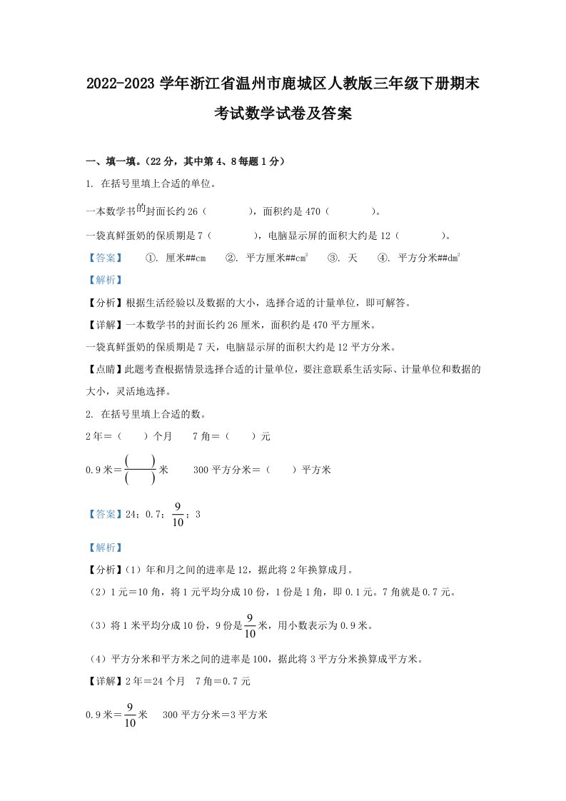 当前位置: 首页小学资源小学三年级正文 2022-2023学年浙江省温州市鹿城区人教版三年级下册期末考试数学试卷及答案(Word版)_共16页 小学三年级 1 周前 0 0 10 以上为部分内容预览,如需源文档请登录您的会员账号进行下载! 声明:本站所有文章,如无特殊说明或标注,均为本站原创发布。任何个人或组织,在未征得本站同意时,禁止复制、盗用、采集、发布本站内容到任何网站、书籍等各类媒体平台。如若本站内容侵犯了原著者的合法权益,可联系我们进行处理。 尚学资源永久会员 打赏 收藏 海报 链接