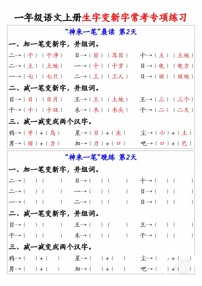 当前位置: 首页小学资源小学一年级正文 一上语文生字变新字常考专项练习_共9页 小学一年级 3 周前 0 0 5 以上为部分内容预览,如需源文档请登录您的会员账号进行下载! 声明:本站所有文章,如无特殊说明或标注,均为本站原创发布。任何个人或组织,在未征得本站同意时,禁止复制、盗用、采集、发布本站内容到任何网站、书籍等各类媒体平台。如若本站内容侵犯了原著者的合法权益,可联系我们进行处理。 尚学资源永久会员 打赏 收藏 海报 链接