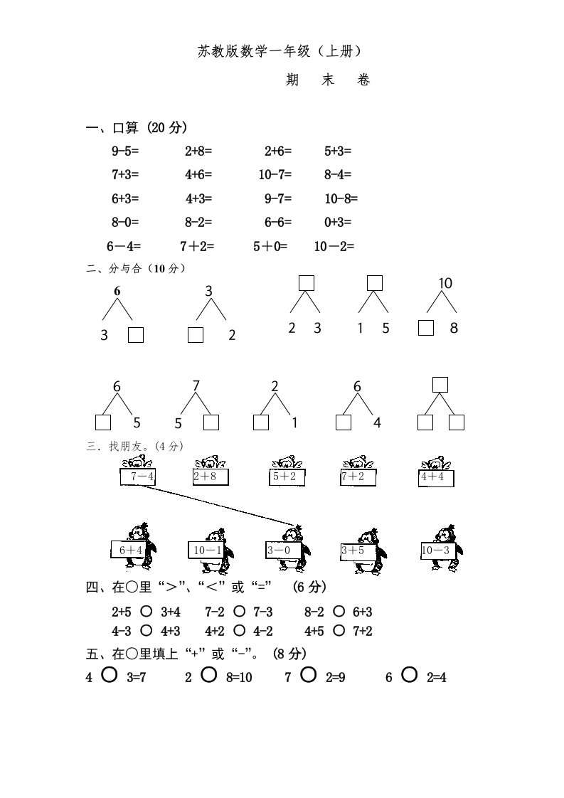 一年级数学上册期末试题(14)(苏教版)_共2页