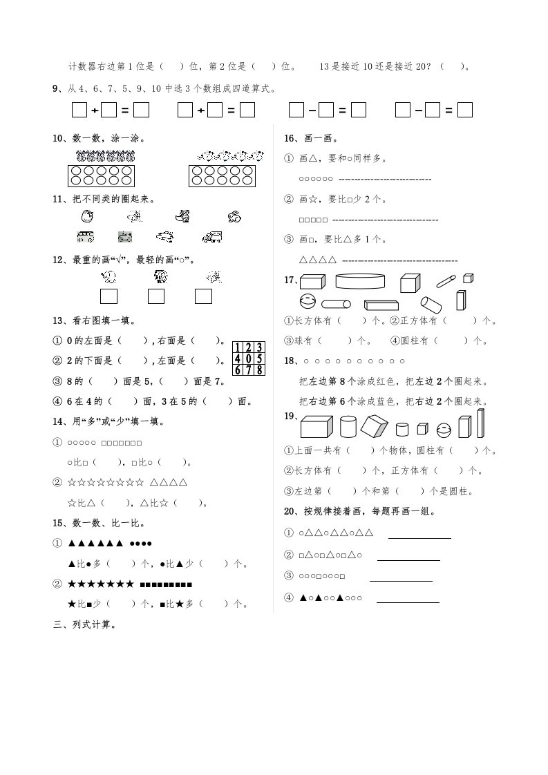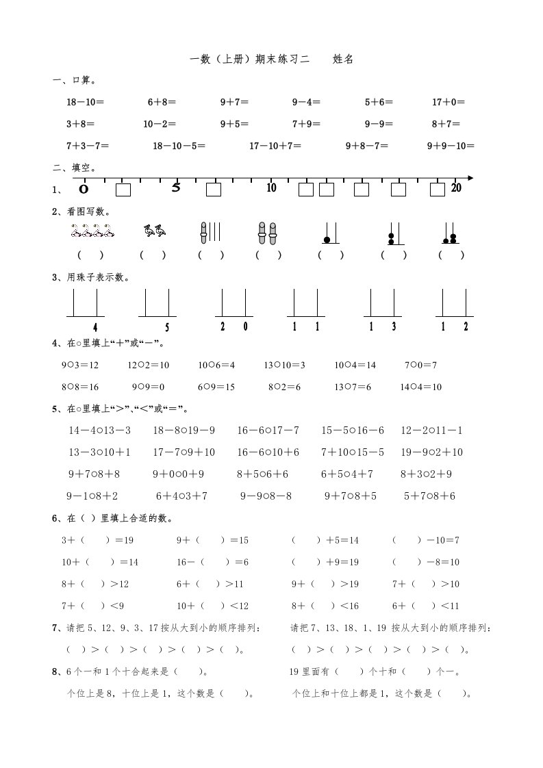 一年级数学上册期末试题(24)(苏教版)_共3页