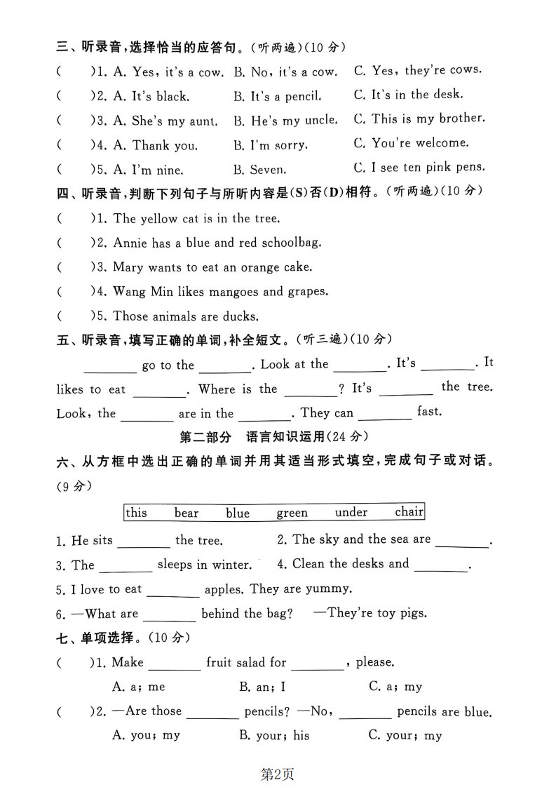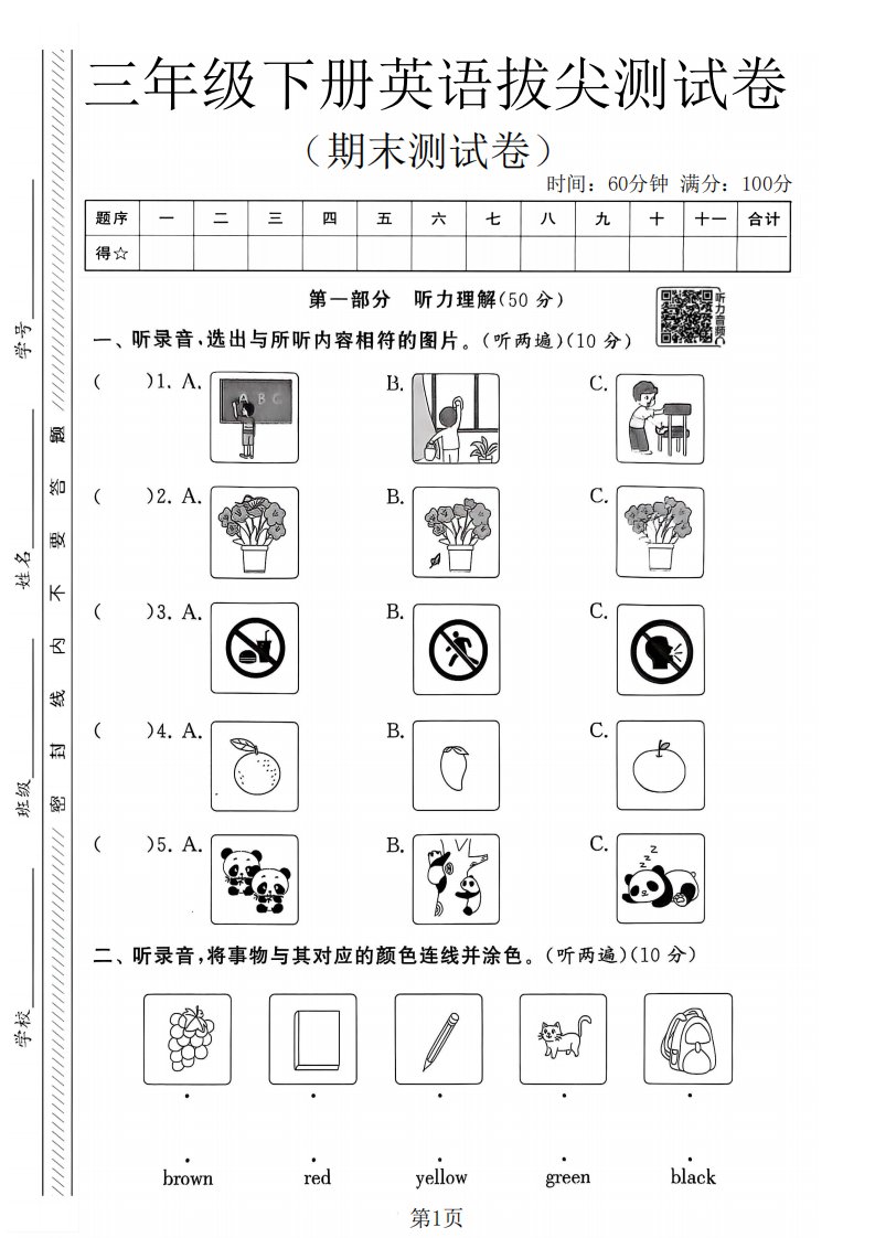 三年级下英语期末拔尖测试卷《译林版》_共4页