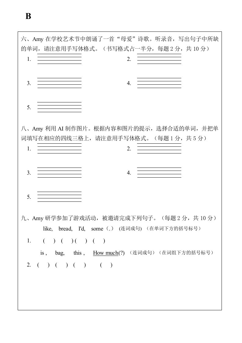 当前位置: 首页小学资源小学三年级正文 人教版(PEP)三年级英语下册Unit1-6期末素养情境卷2答题卡_共2页 小学三年级 7 天前 0 0 5 以上为部分内容预览,如需源文档请登录您的会员账号进行下载! 声明:本站所有文章,如无特殊说明或标注,均为本站原创发布。任何个人或组织,在未征得本站同意时,禁止复制、盗用、采集、发布本站内容到任何网站、书籍等各类媒体平台。如若本站内容侵犯了原著者的合法权益,可联系我们进行处理。 尚学资源永久会员 打赏 收藏 海报 链接