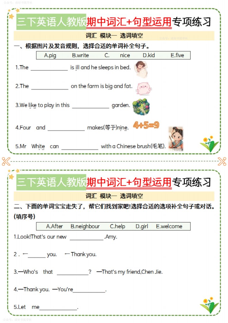 当前位置: 首页小学资源小学三年级正文 三下英语人教期中词汇句型运用小纸条-空白_共12页 小学三年级 1 周前 0 0 10 以上为部分内容预览,如需源文档请登录您的会员账号进行下载! 声明:本站所有文章,如无特殊说明或标注,均为本站原创发布。任何个人或组织,在未征得本站同意时,禁止复制、盗用、采集、发布本站内容到任何网站、书籍等各类媒体平台。如若本站内容侵犯了原著者的合法权益,可联系我们进行处理。 尚学资源永久会员 打赏 收藏 海报 链接