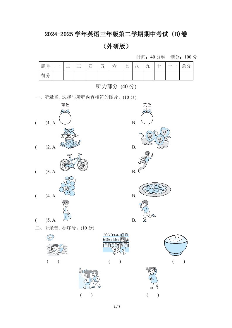 当前位置: 首页小学资源小学三年级正文 外研版2024-2025学年英语三年级下册第二学期期中考试(B)卷_共9页 小学三年级 1 周前 0 0 5 以上为部分内容预览,如需源文档请登录您的会员账号进行下载! 声明:本站所有文章,如无特殊说明或标注,均为本站原创发布。任何个人或组织,在未征得本站同意时,禁止复制、盗用、采集、发布本站内容到任何网站、书籍等各类媒体平台。如若本站内容侵犯了原著者的合法权益,可联系我们进行处理。 尚学资源永久会员 打赏 收藏 海报 链接