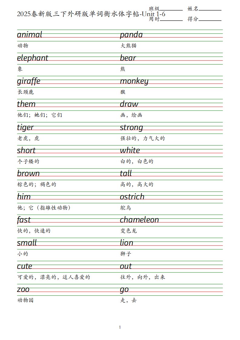 2025春新版三下外研版英语单词衡水体字帖-Unit1-6_共9页