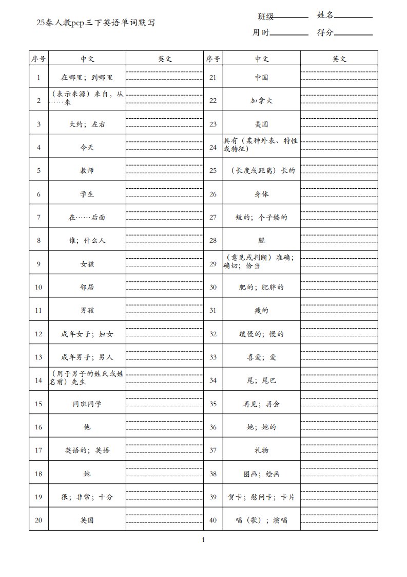 当前位置: 首页小学资源小学三年级正文 25春人教pep三下英语单词默写表(3页)_共3页 小学三年级 7 天前 0 0 5 以上为部分内容预览,如需源文档请登录您的会员账号进行下载! 声明:本站所有文章,如无特殊说明或标注,均为本站原创发布。任何个人或组织,在未征得本站同意时,禁止复制、盗用、采集、发布本站内容到任何网站、书籍等各类媒体平台。如若本站内容侵犯了原著者的合法权益,可联系我们进行处理。 尚学资源永久会员 打赏 收藏 海报 链接