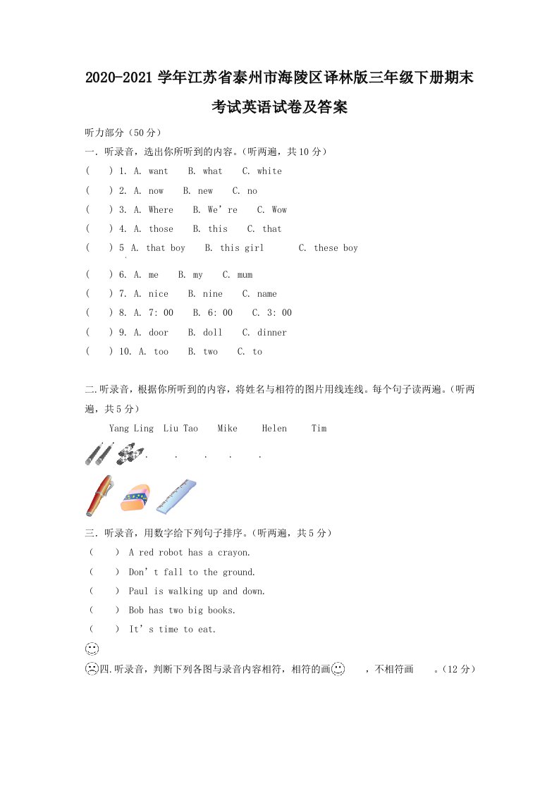 当前位置: 首页小学资源小学三年级正文 2020-2021学年江苏省泰州市海陵区译林版三年级下册期末考试英语试卷及答案(Word版)_共9页 小学三年级 7 天前 0 0 5 以上为部分内容预览,如需源文档请登录您的会员账号进行下载! 声明:本站所有文章,如无特殊说明或标注,均为本站原创发布。任何个人或组织,在未征得本站同意时,禁止复制、盗用、采集、发布本站内容到任何网站、书籍等各类媒体平台。如若本站内容侵犯了原著者的合法权益,可联系我们进行处理。 尚学资源永久会员 打赏 收藏 海报 链接